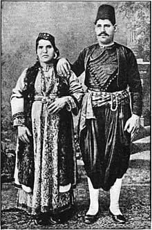 Male Dress Except in some remote villages, Turkish men today are dressed in the western way. Baggy trousers and colored vests that were worn by Turkish at the ottoman era left room for jeans, pants clip, tight shirts. It is at weddings or traditional festivals that one can see parading the beautiful old traditional costumes. Wide style Sarouel trouser, short jacket, turban and/or Fez, wide belts, thus were dressed the Turks at the ottoman time. The old caftan Almost all Arab countries lived under the ottoman umbrella, with the exception of Morocco. The caftan was imported by the Andalusia who left their land to the Maghreb. If the Moroccan caftan has known influences and changes, the ottoman caftan remained monotous. Those Moorish caftans brought from Andalusia were reserved to an elite. Turkish officials, Tunisian or Algerian notables, they were the only ones to wear caftan. So we cannot define it as a component of the traditional ottoman costume. The saroual, the shirt, the Fez and the Turkish jacket Under the Ottoman Empire, most of the men were dressed in a traditional garment composed of a waistcoat ("yelek" in turkish), a shirt called "gomlek", a fez and a sarouel also called salvar (pronounced "chalvar"). Some were wearing a kind of cassok akin to today qamis.