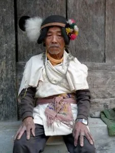 They are natives of Bomdila and resemble the Monapas. Traditionally, a Sherdukpan male wears sleeveless silk material with its edges attached to the shoulder. The costume falls down till knee length. The look is complete only after a skull cap which has yak's hair decorated on it is worn on top of the head. Women's Clothing They wear collarless and sleeveless dresses till knee length. Along with this, a wear waist cloth along with a fully embroidered jacket having full sleeves is worn. Women make a bun on the backside of their head and have super-awesome weaving skills. Tangsa Tribe Men's Clothing