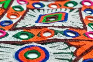 The Wanchoos allow only members of the chiefs family to wear a certain type of blue head on the arms and legs and have special design for their head bands. In Tuensang the dress protocol has great importance specially because, in the past, man's social position depended on his success in head-hunting and in giving feasts of merit. Though there has not been much external influence on the design of the fabrics in Arunachal Pradesh, there has been some borrowing of motifs form the neighbouring areas. In western Kameng for example, the influence of Bhutan and Tibet is evident in many of the products of the Monpa loom. Monpa painting is largely Tibetan in subject and technique. Aeroplanes are now familiar objects all over the frontier and they appear in some recent Mishmi textiles. Embroidery