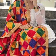Phulkari embroidery started in the 15th century and continues till today. Phulkari is a Punjabi rural tradition of handmade work derived from two Sanskrit word phul means flower and Kari mean work. Phulkari means the flower craft, floral work in which the entire surface of the shawl is decorated with floral designs. Phulkari and Bagh were the traditional embroidery shawls from rural Punjab. The word Phulkari is common in East Punjab and Bagh is a popular word for shawls in west Punjab. Phulkari is a shawl that is designed as embroidery to cover women's heads to be displayed in a Gurdwara. Phulkari is an integral part of the life of Punjabi girl and is considered to be opportune, symbolizing happiness prosperity, and Suhaag of a married woman.