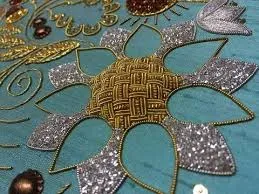 - Salma Sitara which uses small round pieces of gold and silver in between the Zari work