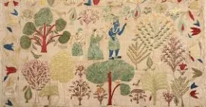 Chamba rumals are the exceptional and wonderful work of embroidery depicting a delicate fine and flawless work called needle miniatures of Himachal or Pahari Rumal. The primeval Chamba has undergone a progression with respect to motifs, stitches, workmanship, appearance, and colors. Colors employed in this type of embroidery are very vibrant bright and bold. The Chamba Rumal had unique importance as embroidery women are used for covering gifts, deities, household accessories such as caps, hand fans, pillow covers, wall hanging, ceiling covers, and blouse piece. There are two different kinds of Chamba rumals one in the style of Pahari paintings and the other one is a folk style used by women to embroidery their choli and rumals using their own designs. The thread used for embroidery is a Silk thread that gives a unique effect against a dull cotton background. The Chamba Rumal is a combination of infinite vibrant and contrasting colors like red, yellow, green, blue, crimson, and purple. The folk style uses bright colors including pink, lemon while the sophisticated color palette includes pale shades like dark green, blue, ochre.