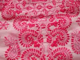 The word chikankari is coined from Persian word Chakeen that means elegant patterns on the fabric. This type of embroidery is famous in the state of Uttar Pradesh especially the city of Lucknow known as a hub of chikankari embroidery. Chikankari embroidery is also known as a Shadow Work by using herringbone stitch from the wrong side of the fabric to create the shadow on the right side, imparting an outline for Motif. Chikankari embroidery is also popularized as White embroidery. Traditionally the chikankari embroidery was exclusively done on white muslin fabric using white thread. Nowadays it has been done on various types of fabrics like linen, nylon, georgette, cotton, chiffon, and also synthetic fabrics. This type of embroidery is also done on various household things like curtains, bedsheets, pillow covers, cushion covers, table cloths. Contradicting to ancient times chikankari embroidery is done on various pastel color fabrics but using white color thread. The motifs are stimulated from natural flora including jasmine, rose, peacock, parrot, and lace patterns. The patterns of printed from the woodblocks in washable colors. The designs are stamped