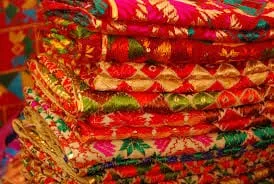 Originally Phulkari embroidery was done on back covers but nowadays it is also done on cushion covers, bolster covers and saris. The Phulkari embroidery is done on The Wrong side with the threads of floss silk called Pat. Pat is red, white, golden, green, blue, purple, and orange in color. Nowadays cotton blended threads and rayon floss are also used. The motifs are made of horizontal, vertical, and diagonal stitching producing geometrical patterns like square, rectangle, vertical, and horizontal lines. Zari Work