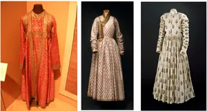 Introduction The "golden time of Indian History" is referred to as the Mughal era. They brought their culture, religion, and customs with them, which had an impact on the jewellery and clothing of the time. The tailored salwar kameez with Mughal influences gained popularity. Dresses were made by skilled master craftsmen and labourers who were imported from various nations. During Akbar's rule in the 16th century, dresses were made up of a knee-length coat and a full skirt. The creator of brocade was Jahangir's wife, Noorjahan. Initiating the cottage business, Noorjahan had her clothing produced in the chikenkari technique. Under the support of the Mughals, the textile industry flourished. [1] The term "Mughal attire" refers to clothes created by the Mughals in the Indian subcontinent throughout the 16th, 17th, and 18th centuries. It was fashioned with muslin, silk, velvet, and brocade and had opulent designs. Cochineal, sulphate of iron, sulphate of copper, and sulphate of antimony were employed as colours in intricate designs that included dots, checks, and waves. [2] Textiles used During the Mugal era, a range of materials were employed, from light brocade to delicate muslin. Most often, silk was used to make the king's clothing. The veils were made of nets. There were also threads made of gold and silver. At the time, textiles featured light and warm wool, pashmina, and wild goat's hair fabric (tus). Silks were frequently laced up and decorated with gold and silver thread. [1] Although it's common to assume that wealthy people like silk materials, fabrics made of wool, cotton, and goat hair were also extremely valuable because of their appealing textures (softness, warmth, etc.). Textiles were prized in Mughal India for a multitude of reasons, including the monetary worth of the materials, the sensory appeal, the metaphorical and symbolic links, and the socio-political connotations. These clothes were all frequently perfumed with rose water. According to legend, shawls were so thin that they could fit through a finger ring. The various muslins were given lyrical titles like "woven air" and "flowing water," respectively, such as ab-i-rawan and daft hawa. Each item would lose its functionality after just one use. Mughal Costume