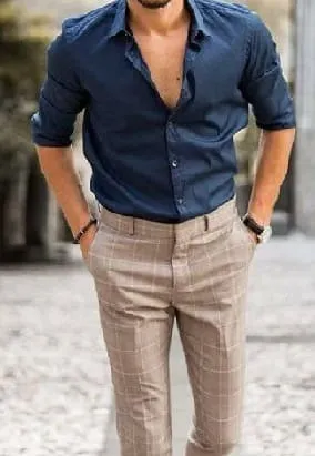 A Rich and dark shade of wine when paired with a tan shade, elevates the wine shade in your outfit, balancing the whole look. This combination is a perfect example of a rich and bold outfit for men.