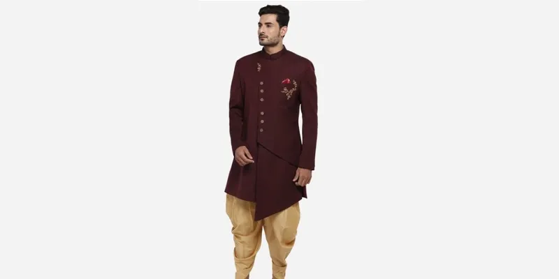 Rich wine kurta and tan-colored pajamas are a perfect combination for a festive look. Pair this kurta pajama set with a beautiful pair of mojari to complete the look. For a casual look pair a wine-colored sweatshirt with a tan-colored chino or trousers. Complete this look with black shoes and a pair of goggles.