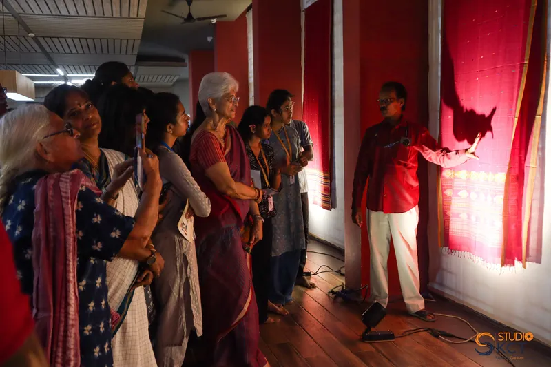 The exhibition featured curated heirlooms, weaving traditions, and cultural narratives, including Akkarai: Ecosophy of Sarees and The Devanga Community, highlighting heritage practices and stories tied to weaving. Rare heirlooms, such as an eight-gajam saree and a 70-year-old cotton angavasthram, were also displayed.