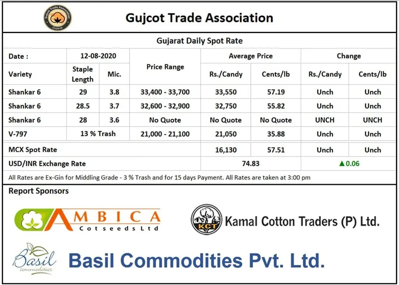 Gujarat Cotton Price ,12th Aug 2020