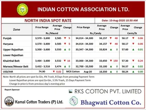 North India Spot Rate (New Crop) ,10th Aug, 2020