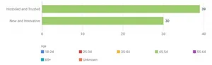 - Consumers between the ages of 35 and 45 choose new and growing brands over established ones. But this age range was rather open-minded and evenly split between the two options.