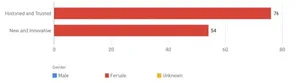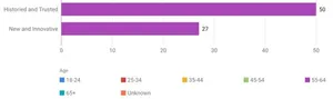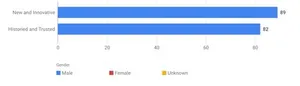 The data we gathered shows that millennials love fresh, modern, innovative, and bold companies, whereas Boomers and Gen Xers prefer established and trusted businesses.