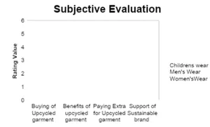 The costing of an upcycled garment involves a thorough analysis of expenses related to its production by calculating material and manufacturing costs prevailing in the apparel industry, and pricing strategies to ensure the upcycled garment's viability in the market. Regarding the subjective evaluation, the questions for upcycled garments made from industrial wastes were asked of customers. The key questions were asked the wearer about the developed product such as 1. How likely are you to buy upcycled garments from garment waste? 2. Are you aware of the benefits of upcycling materials from garment manufacturing waste? 3. Would you pay extra for upcycled garments supporting sustainability? 4. How important is it to support sustainable fashion brands?