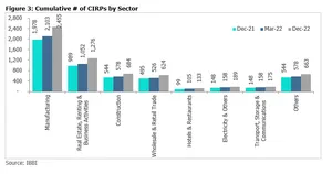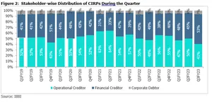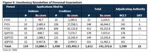 - After slowing in the pandemic period of FY21 and FY22, the number of insolvency cases increased by 25% y- o-y in Q3FY23. However, despite the increase, the number of cases admitted to the insolvency process continued to be lower compared to earlier quarters in FY19/20. The distribution of cases across sectors continues to remain broadly similar, compared to earlier periods given the extended resolution