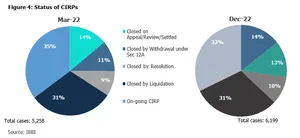 The status of the cases has largely remained constant compared with the previous period. Of the total 6,199 cases admitted into CIRP at the end of December 2022: