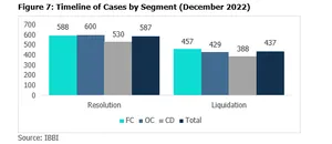 - The overall recovery rate till Q3FY23 was 30.4% implying a haircut of approximately 70%. The cumulative recovery rate has been on a downtrend, decreasing from 43% in Q1FY20 and 32.9% in Q4FY22 as larger resolutions have already been executed and a significant number of liquidated cases were either BIFR cases and/or defunct with high resolution time, coupled with lower recoverable values.