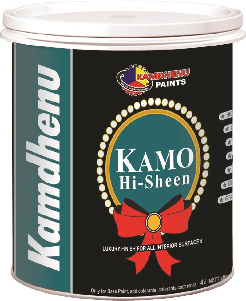 KAMO Hi-Sheen Interior Emulsion is a Ultra Luxury Premium Emulsion which gives mirror like gloss finish and a sweet smell, high scrub resistance, best washability, superior adhesion & stain resistance. It is formulated with ultra-premium ingredients using advanced technology to provide unmatched durability, coverage and adhesion.