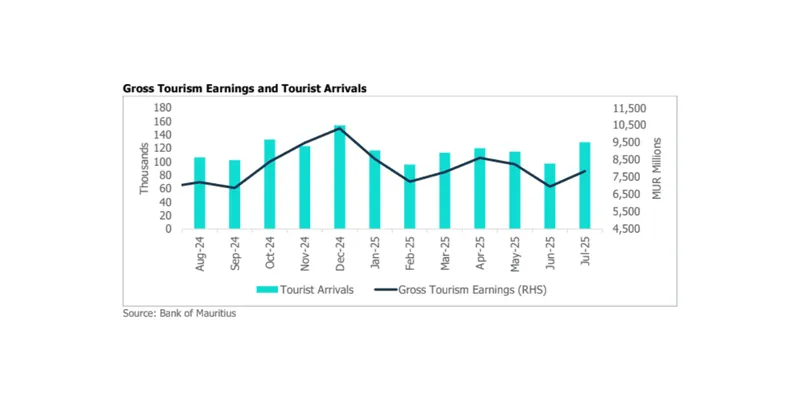 Tourist arrivals in Mauritius surged in July 2025, recording a month-on-month growth of 32.8% to reach 129,206 visitors compared to June’s 97,273. This rebound reflects improved seasonal dynamics and strengthening global travel demand. Gross tourism earnings rose to MUR 7.8 billion in July, up from MUR 7.0 billion in June, indicating higher-value visitors and longer stays. Cumulative arrivals from January to July reached 788,115, a 3.3% YoY increase, while cumulative tourism earnings climbed 7.7% YoY to MUR 55.2 billion, outpacing arrivals growth. The outlook remains positive, supported by better air connectivity and government initiatives to diversify tourism into eco-tourism, cultural tourism, sports, and wellness offerings to reduce seasonality and boost sector resilience.
