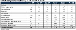 A revival in investment activity is closely tied to the strength of consumption demand in the economy. The sustained moderation in inflation, RBI’s policy rate cut, and the income tax relief announced in the FY26 Union Budget, remain positives for supporting household spending in the coming months. Going ahead, an improvement in the consumption and investment scenario remains essential for the overall IIP performance.