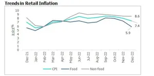 After remaining in the double-digit range for the past ten months wholesale inflation dropped to 9.2% in the month ended mid-December from 10% in the previous month. In the coming months, easing of commodity and oil prices could further help in lowering wholesale inflation.