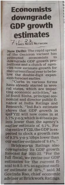 The 3rd wave, Omicron has started the path of disruption in education, hotel and tourism sectors and no predictions can be made right now. The economists are forecasting again the downward tendency of GDP. Let us hope for the betterments.