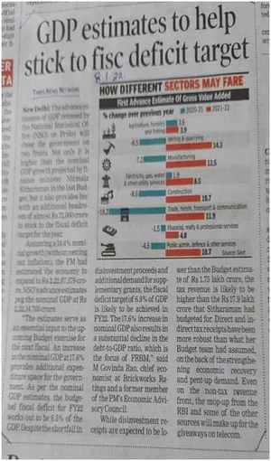 The TOI dated 8.01.22 says there will be substantial decline in the debt -to-GDP ratio. But the progress is found in each industry in comparison to 2020-21 to that of 2021-22.