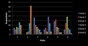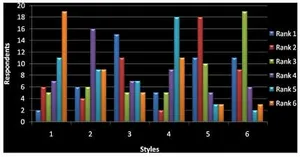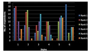 Among mens designs Style 3 ranking first was most preferred followed by Style 5, 6 and 2 ranking second third and fourth. The least preferred were Styles 4 and 1 ranking fifth and sixth respectively.