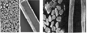Figure 2 Microscopic structures of fibres C.S. and L.S. of bamboo and viscose rayon