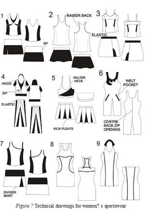 – Two – piece garments for sportswear were preferred more than 1–piece suits or jumper types.