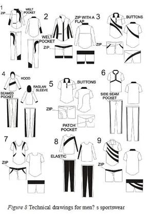 - Design sportswear (unisex, women and men) incorporating different styles of collars, pockets, fasteners and other details.