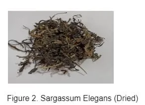 R.Srinivasa Gopalan, Salem, Tamil Nadu, India. Abstract Extensive use of synthetic dyes in textiles have led to graver polluting environmental concerns, due to which brands are deliberated to look for sustainable options for saving the planet. This paper discusses the extraction and dyeing with the natural dyes from the brown seaweed Sargassum Elegans. Here for extraction of color pigment a combination of microwave assisted solvent extraction method has been used. Thus the extracted pigment solution was concentrated by simple evaporation technique. This extracted natural pigment has been dyed on cotton yarn as well as fabric using the ultra-rapid dyeing technique with the suitable mordant. The sustainable ultra-rapid dyeing technology is based on zero trade effluent generation and zero emissions. The obtained colors using normal solvent extraction and microwave assisted solvent extraction are compared for their depth of shade, and various fastness properties. Finally the results indicated that the microwave assisted method has excellent depth and fastness properties. Using the ultra-rapid dyeing technology commercial production of this natural dyeing can be done as per requirement. Keywords: Ultra-rapid dyeing, Natural dyes, brown seaweed Sargassum Elegans, sustainable Introduction Nowadays, interest in the use of natural dyes has been growing rapidly due to stringent environmental standards imposed by environmental boards and pollution control boards of many countries in response to environmental and health issues associated with synthetic dyes (Kamel et al., (2005)). Research has shown that synthetic dyes and their related processes release harmful chemical pollutants in both water and land which would be allergic, carcinogenic and detrimental to human health. Natural dyes from plants provide an important alternative to petrochemical based dyes, only if harvesting is carefully managed without affecting environmental and social benefits. Natural dyes not only release medicinal properties but also improve the aesthetic value of the product and they are unique and ecofriendly (Neha Grover et al., (2011)). About 71% of the worlds surface is covered with water of which 96.5 % of water is in oceans. Sargassum is a seaweed that belongs to the class of phaeophyceae that grows wild in abundance throughout the world, especially along with the coastal areas in Southeast Asia (Ale MT et al., (2012)). Algal forms are the richest source of pigments and can be produced in renewable manner, since they produce some unique pigments sustainably (Patrick Galaupa et al.,(2005)). Optimized process parameter with microwave assisted solvent extraction using Response Surface Methodology (RSM) based on Central Composite Design (CCD) have been used for extraction of pigments from seaweed (P A Handayani et al., (2021)). Brown pigment in seaweed contains carotenoid (fucoxanthin) which could even provide a new functional food and cosmetic ingredient with anti-metabolic syndrome activity (anti-obesity, anti-diabetes) (S.K. Chandini et al., (2008)) that has important nutraceutical properties, including antioxidants. Besides providing anti-obesity, anti-inflammation effect (H. Maeda et al., (2008)), low risk for breast cancer (X.J. Duan et al., (2006)), prostate cancer cells (E.K. Nara, et al., (2001)) and a diminishing risk of cardio-vascular disease (P. Burtin et al., (2003)) . This study shows the effective use of extracted pigments for dyeing of cotton using the most sustainable ultra-rapid dyeing technology. The process of production of natural dyes from algae and subsequent dyeing with cotton does not involve the usage of harmful and/or polluting chemicals. The majority of these effluents are biodegradable and can also be reused as fodder, bio plastics etc. Due to Non-Toxicity and Non Carcinogenicity there has been steady increase in the need for non-toxic eco friendly colorants and dyes from Algae for dyeing of textiles. In the present work brown seaweed extracts were used to dye the cotton fabrics at optimized conditions by using a single mordant and color fatness of the dyed fabrics were also evaluated. Materials and Methods Materials Seaweed, ethanol, ferrous sulfate and water. The tools used are scissors, blender, analytical scales, glassware, pH paper, thermometer, microwave, electric heater, filter paper and UV-Vis spectrophotometer. Preparation of seaweed Seaweed samples (Figure 1, 2) were collected from the coast of Tamil Nadu and were identified as Sargassum Elegans (Moe, R.L. (1996)). These raw materials were washed with distilled water and sun dried for 48 hours. Then they were dried in an oven at 60 °C for 12 hours. Kingdom: Plantae (Plants) Phylum/Division: Phaeophyta (Brown algea) Class: Phaeophyceae Order: Fucales Family: Sargassceae Genus: Sargassum Species: Sargassum Elagans