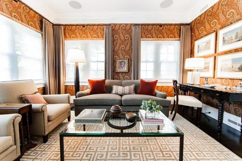 Overwhelm a room by only using autumnal shades is not good. Combination of traditions offset cooler undertones complimenting traditional furnitures or pieces as lamps and accent tables, keep the room fresh looking and modern.