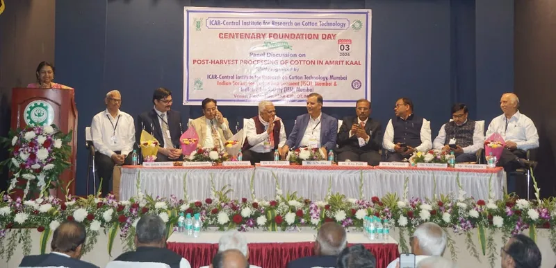 Dr. S.N. Jha, DDG (Agricultural Engineering), ICAR, New Delhi, chaired a panel discussion on "Post-harvest Processing of Cotton in Amrit Kaal" during the morning session. Opening remarks were given by Dr. P.G. Patil, VC, MPKV, Rahuri, and Dr. C. D. Mayee, Ex-Chaiman, ASRB, New Delhi. Dr. Kartikeya Dhanda, secretary of the Textiles Committee in Mumbai; Dr. Ashok Athalye, professor of ICT in Mumbai; Dr. M. K. Sharma, full-time director and chief executive officer of M/s. BSI Ltd. in Nagpur; Dr. K. Narsaiah, ADG (Process Engineering); Dr. Y. G. Prasad, director of ICAR-CICR in Nagpur; Dr. R. Kachru, former ADG (PE), ICAR As part of the panel discussion at the Amrit Kaal, ICAR and Shri Ram Bohra from AICOSCA, Mumbai, offered their insightful opinions on post-harvest cotton processing, emphasizing important areas for the Institute to focus on. The Institute's 100-year history of outstanding research was also highlighted by Dr. K. R. K. Iyer, the former director of ICAR-CIRCOT in Mumbai.