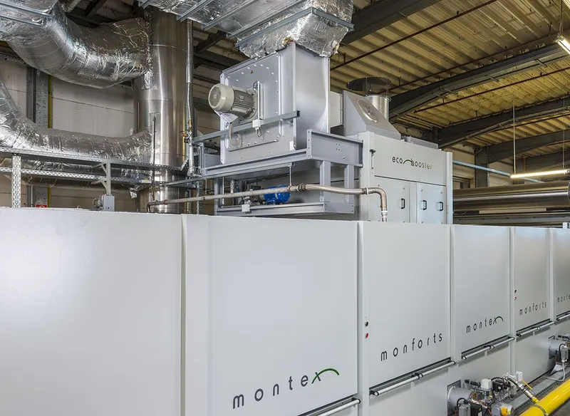 The Monforts Eco Booster, which is completely integrated into the chamber design of the latest Montex stenter, is another retrofitting option. This single state-of-the-art heat recovery system with automatic cleaning can be added to existing ranges of up to eight chambers to achieve significant energy savings.
