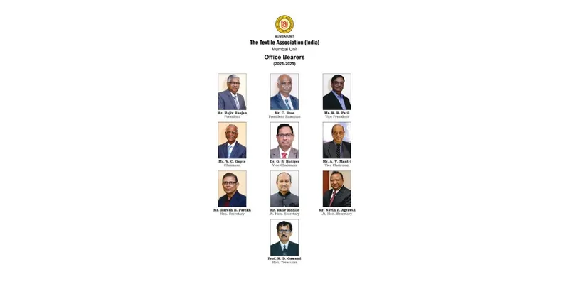 The 72nd Annual General Body Meeting was held on 26th September 2023, at the Office of TAI, Mumbai Unit and was attended by members in large numbers. Mr. Rajiv Ranjan (Former Executive Director & CEO, Hindoostan Mills Ltd. (Thackersey Group)) has been unanimously re-elected as President and Mr. R. R. Patil (CEO & Managing Director, Gokak Textiles Limited) has been unanimously elected as Vice President of The Textile Association (India), Mumbai Unit, for the term 2023-2025. The first meeting of the Managing Committee & Governing Council members was held on 7th November 2023 where Mr. Rajiv Ranjan chaired the meeting. The following members were elected as Office Bearers for the term 2023-2025. President Emeritus : Mr. C. Bose Chairman : Mr. V. C. Gupte Vice Chairman : Dr. G. S. Nadiger Vice Chairman : Mr. A. V. Mantri Hon. Secretary : Mr. Haresh B. Parekh Jt. Hon. Secretary : Mr. Rajiv Mohile Jt. Hon. Secretary : Mr. Navin P. Agrawal Hon. Treasurer : Prof. K. D. Gawand