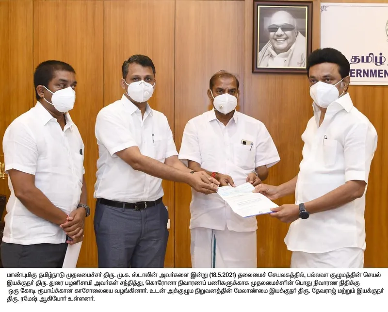 Pallavaa Group / VSM Weaves - Spinning & Weaving unit, Pallipalayam, Erode has contributed INR.10Million- 1 Crore rupee ( USD.135,000) to Tamil Nadu Chief Minister Thiru.M.K.Stalin to CM’s COVID-19 relief fund on 18/5/2021.