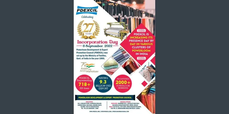 The council was set up by Ministry of Textiles, Govt. of India in the year 1995 with an objective of developing the powerloom sector of India and promoting export of powerloom products. PDEXCIL is having its headquarter at Mumbai, Maharashtra and regional office at Erode, Tamil Nadu and Delhi. PDEXCIL have about 2000 members, manufacturers/trader and/or exporter of powerloom products from all over India covering all major powerloom clusters like, Bhiwandi, Ichalkaranji, Solapur, Surat, Ahmedabad, Erode, Karur, Sirsilla, Guntur, Belgaum, Bengaluru, Punjab, Haryana, J&K, Uttar Pradesh, Madhya Pradesh etc.