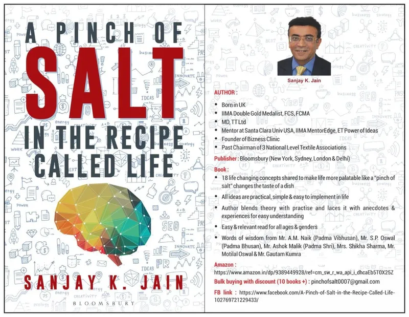 Glad to share that dream to write a Book of Mr. Sanjay Jain is finally realized. The Book "Pinch of Salt in the Recipe Called Life" published by renowned international publisher Bloomsbury (Harry Potter, Sky is Pink fame)has been released in the World Book Fair in Pragati Maidan on Jan 4th 2020 ,