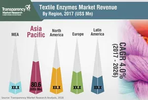 According to a recent report by Transparency Market Research (TMR), the global textile enzymes market is foreseen to witness notable growth in various parts of the world. The global textile enzymes market is estimated to register a steady CAGR of 4.0% within the forecast period from 2018 to 2026. In 2017, the market was valued at around worth US$201.5 mn.