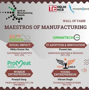 Geetika Dayal, Executive Director, TiE Delhi NCR opined, "For nearly a decade TiE Delhi-NCR & Power2SME have partnered together to bring to the fore, innovative startups manufacturing in India. The Spirit of Manufacturing Awards is a valuable platform for founders to showcase their exceptional propositions in the domain. Our partner Power2SME has been instrumental in leading this movement toward a self-reliant nation. We are happy to put a spotlight on ventures 'Making in India' & give startups the recognition they truly deserve."