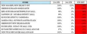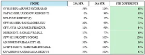 Hyderabad Airport (+68% STR) and Bangalore Lulu (+73% STR) excelled, attributed to localized assortments and high footfall.
