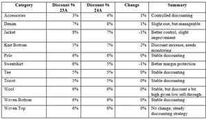 - To evaluate and compare discounting strategies across categories to understand their impact on margins and inventory liquidation.