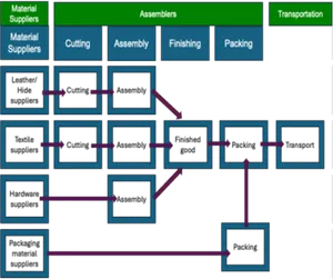 - d) Packaging material supplier – They supply the packaging materials for packing the product post finishing and quality inspection. The packaging materials can be Fabric (Velvet) bags, plastic bags, polystyrene foam and corrugated boxes etc. Majorly the packaging materials can be classified as plastics, Textiles and paper/ corrugated materials. Very high standards are expected as the packaging may impact the brand image, also the colour, GSM and printing patters are very specific. These materials are delivered as per order by the assembler.