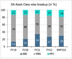 During 9MFY23, mortgage-backed securitisation (MBS) and microfinance [MFI] loans transactions constituted around 52% and 18% of the DA volume respectively, while asset-backed securitisation (ABS) transactions which include pools backed by all the other asset classes accounted for around 30%.