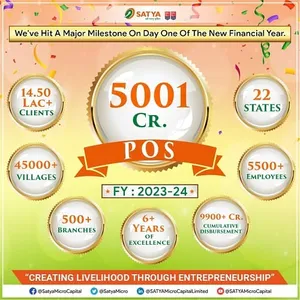 SATYA MicroCapital, one of the fastest growing RBI registered NBFC-MFI has achieved the milestone of Rs. 5001 crores Assets Under Management on the commencement of FY23-24. This is not the only feather SATYA has added to its golden cap at this momentous occasion. SATYA has also received fresh capital of worth Rs. 153.45 crores (approx. USD 18.92 Million) from Gojo & Company Inc. which will further bolster the operational implementation of the micro finance institution in forthcoming fiscal year. This stands as the testimony of the phenomenal growth exhibited by SATYA since its inception.