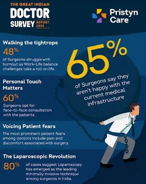 Dr. Vaibhav Kapoor, Co-founder of Pristyn Care, shared his thoughts on the studys insights, saying, "We embarked on this comprehensive study with a determined objective of gaining profound insights into the intricate dynamics of surgeons as they navigate the delicate balance between their personal and professional lives. Our overarching goal was to shed light on the multifaceted challenges faced by surgeons in India, including the pressing issues of lower compensation and inadequate medical infrastructure. At Pristyn Care, we firmly believe in the core principle of prioritizing the holistic well-being of our esteemed doctors, consistently striving to provide a supportive environment that nurtures their personal growth and professional fulfillment. We have implemented a range of initiatives aimed at supporting the mental and physical well-being of our esteemed doctors. These initiatives include the introduction of doctor counseling programs, providing comprehensive medico-legal support, ensuring guaranteed pay and opportunities for growth and career advancement, implementing mandatory breaks and leaves, fostering a supportive environment for continuous learning and development, prioritizing skill enhancement programs, and, above all, relieving doctors from the burden of patient acquisition and the associated stress."