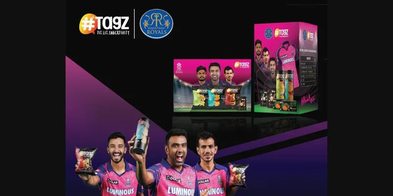 Bangalore, April 24, 2023: TagZ, India’s largest popped chips maker, has partnered Rajasthan Royals cricket team to launch co-branded products and snack packs for this season, part of its wider strategy to expand its portfolio with innovative flavours. As an Official Licensee partner of the Royals, TagZ has a launched Rajasthan Royals X TagZ hamper exclusively on ecommerce such as SwiggY Instamart, Blinkit and Zepto. In addition, exclusive hampers with limited edition Royals merchandise such as Rajasthan Royals jerseys and beer mugs will be available exclusively online on TagZ’s official site www.tagzfoods.com "TagZ" represents the young consumers that are looking for better snacking options. As a challenger brand in the chips and wafers market, we believe Rajasthan Royals holds that special place amongst the cricket fans. The Royals also represent never losing without a fight, being resilient and TagZ being a GenZ brand resonates with these values. We are excited to partner with Rajasthan Royals and hope to provide its fans with the most royal snacking experience through our range of popped potato chips with 50% less fat, hemp cookies and gourmet dips,” said Anish Basu Roy, Founder, TagZ. TagZ will also be launching its Rajasthan Royals co-branded masala and cream onion flavours in single-serve packs priced at Rs 30 across its 5000 stores in top 20 cities. “We are always trying to find innovative ways of engaging with our supporters and enhancing their matchday experiences. This association with India’s first and largest popped chips maker, Tagz, ensures that we are also promoting a healthy lifestyle amongst our fans given the wide range of co-branded products that are on offer which provides them with refreshing snacking options while they cheer for us,” Zameer Kochar, Chief Marketing Officer, Rajasthan Royals. About TagZ : Founded by Anish Basu Roy and Sagar Bhalotia in 2019, TagZ Foods is the first brand in India to manufacture popped potato chips that are 50% less fat, international gourmet dips and a range of premium bar snacks. The Bengaluru-based TagZ Foods counts 9 Unicorns, Dexter Angels, Agility Ventures, Venture Catalysts, along with Namita Thapar, Ashneer Grover, Arjun Vaidya as it’s investors is planning expand its product line, production capacity and strengthen its distribution to other cities in the country. The startup utilizes cutting-edge food technology to make snacking experiences such as potato chips that claim to have no cholesterol, no transfat, no artificial colors, or preservatives and centre-filled hemp cookies.