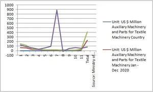 Auxiliary Machinery and Parts for Textile MachineryinChina had a US$66.85 million in 2020 whereas in 2021 it became US$147.63 million i.e. 120.84%; Belgium in 2020 was at US$6.44 million whereas in 2021 it increased by US$12.6 million i.e. 95.65% of growth; in CzechRepub it was at US$1.11 million in 2020 wherein in 2021 its growth shot up to 889.19% i.e. US$10.98 million; Korea was at just US$4.47 million in 2020 while in 2021 it became US$7.34 million and Germany was at US$59.26 million in 2020 where as in 2021 it became US$112.41 million.