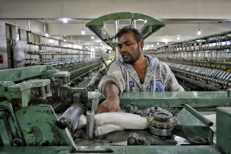A man keeps a vigil on spinning machine, to check if there are any flaws. Image Credit: Qazi Wasif