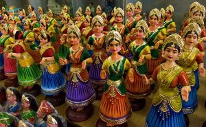 Swamimalai, Ramanathapuram, Trunelveli, Tiruchirapalli, Thanjavur and Kanyakumari districts have highly skilled artists making stone icons are known as Sthapathis. Stone icons are also made in Gopichettipalayam and Satyamangalam in Salem district and Tiruvannamalai. Miniature carvings of humans, birds , and reptiles are done at Madayur village. They use traditional methods of stone carving as approved in the Shilpa Shastra. They are polished by hand to give the figures a good glaze and glare. Rubbing with wax is also done to give the figures a lustrous appearance. One of the specialties of stone carving at Tamil Nadu is the illustration of animal and bird life. Doll Making